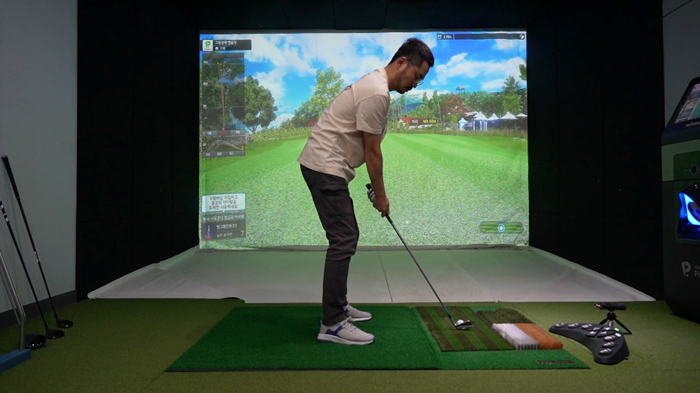 2022년 11월 당시 모든 티샷은 매트에서 진행되었다.