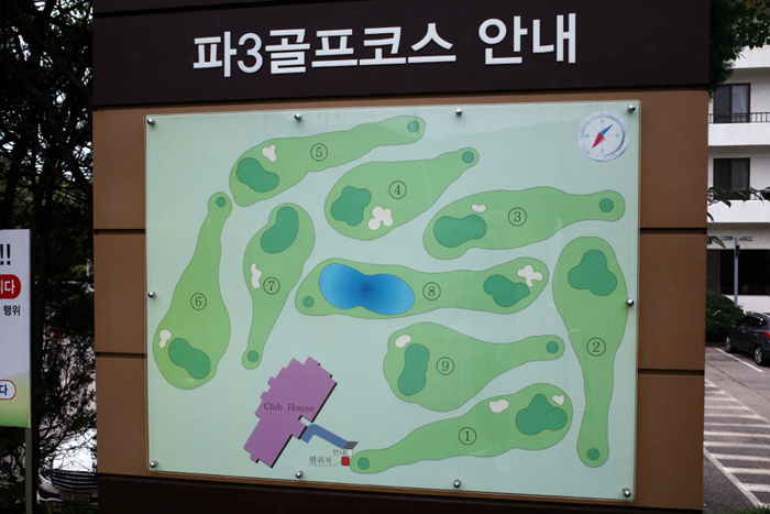 집에서 가까이 위치한 인도어(드라이빙 레인지) 연습장의 퍼팅 연습장은 이렇게 홀컵이 곳곳에 몇 개 있는 형태로, 많은 골프 연습장들이 비슷하다. 여기에 퍼티스트2 제품을 활용해보니 작은 공간에서 훨씬 재미있게 연습할 수 있었다.