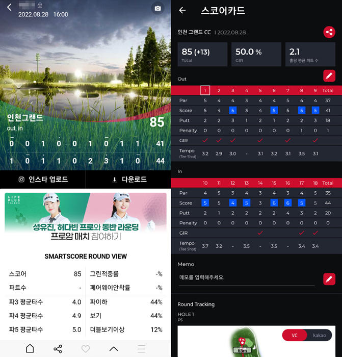 최대한 동일한 크기의 스트로크를 진행했음에도 그린스피드 3.5 설정 시에는 거의 7m에 달하는 결과가 나타난다. 그린 스피드에 따라 같은 스트로크에서도 공이 굴러가는 거리가 달라지는만큼 라운드 전 미리 체크하고 연습하면 좋다.