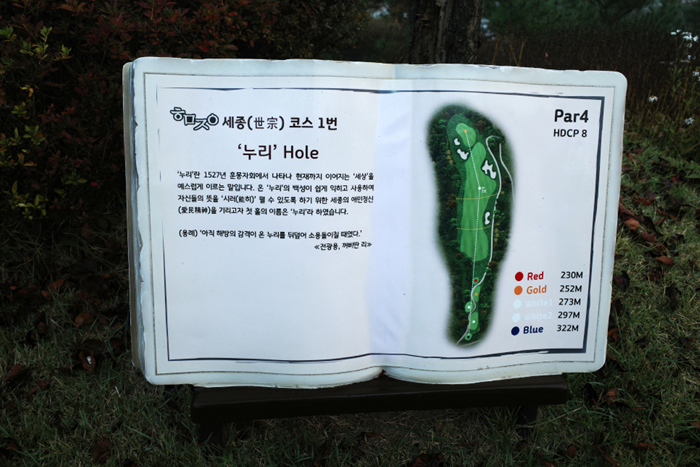 촬영 당시에는 세종 코스먼저 플레이를 진행했다. 1번홀은 파4 297m이며, 10월말의 아침 일찍 티오프다보니 안개가 꽤나 있었다.