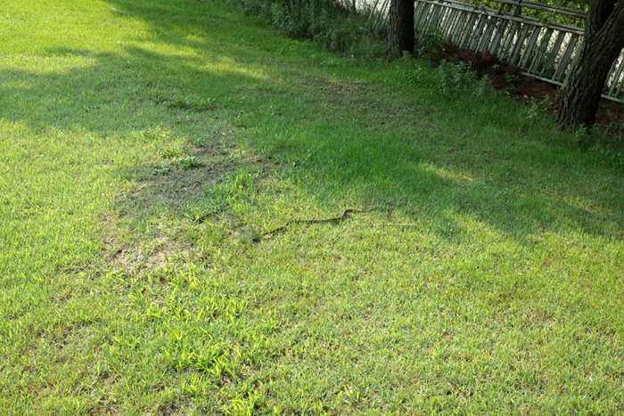 티샷 후 그린으로 이동하는 도중 마주친 뱀. 여름에는 골프장에서 뱀을 조심하는 것도 중요하다.
