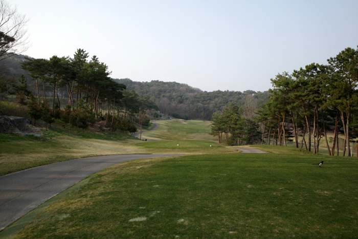 청룡코스 9번홀은 300m 파4. 낙구지점 좌/우의 벙커 외에는 코스가 넓고 일자형이라 큰 어려움 없이 공략할 수 있다.