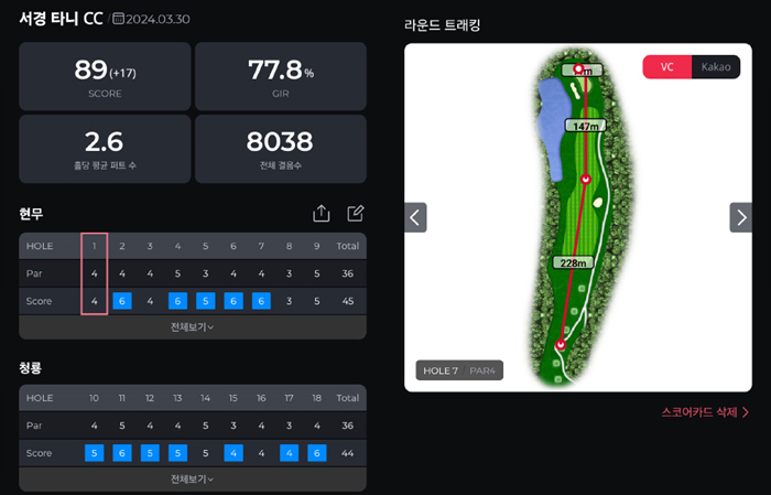 서경타니CC 라운드는 최근 평균 스코어 대비 다소 아쉬운 결과를 기록했다. 전체적으로 코스 구성이 크게 어렵지는 않지만 잔디 상태가 온전하지 않고 그린의 난이도가 꽤나 높았던 이유로 분석할 수 있다. 수도권에서의 접근성은 매우 좋지 않지만 그만큼 저렴한 그린피에 전체적으로 만족스러웠던 곳이다. 후기를 마친다.