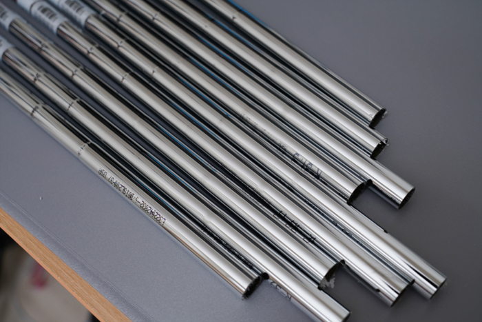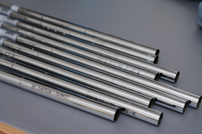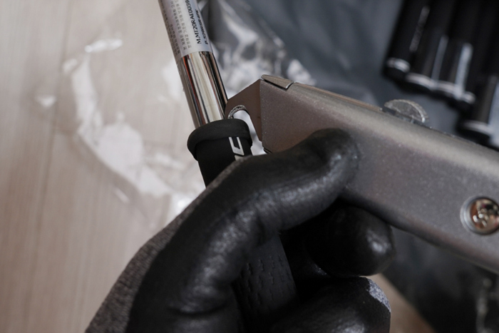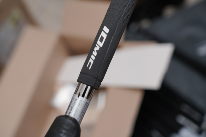 그립을 끝까지 끼우면 로고나 방향 표시 부분이 기존에 샤프트에 표시했던 방향과 일치하게 돌려 맞춘다. 고무 소재의 특성상 너무 많이 밀어 넣으면 늘어날 수 있기에 장착하지 않은 그립과 비교하여 길이를 맞춰준다.