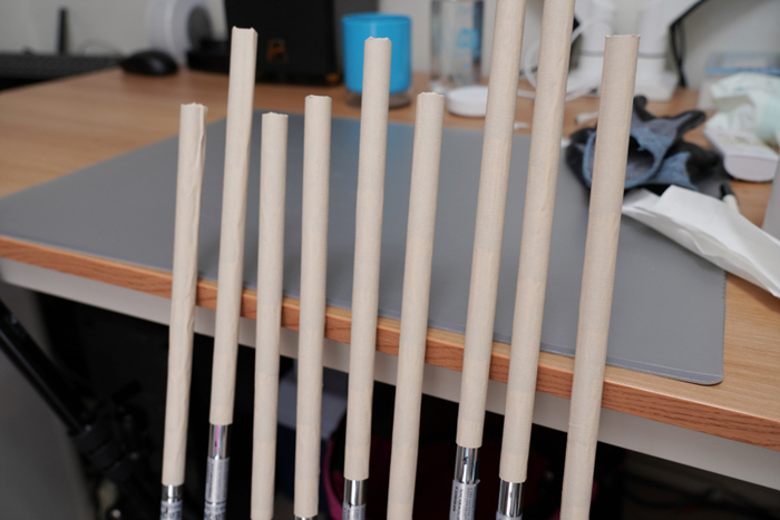 새로 부착할 종이 테이프가 최대한 깔끔하게 부착될 수 있도록 키친타올에 솔벤트를 묻혀 그립이 장착될 부분을 깨끗하게 닦아준다.