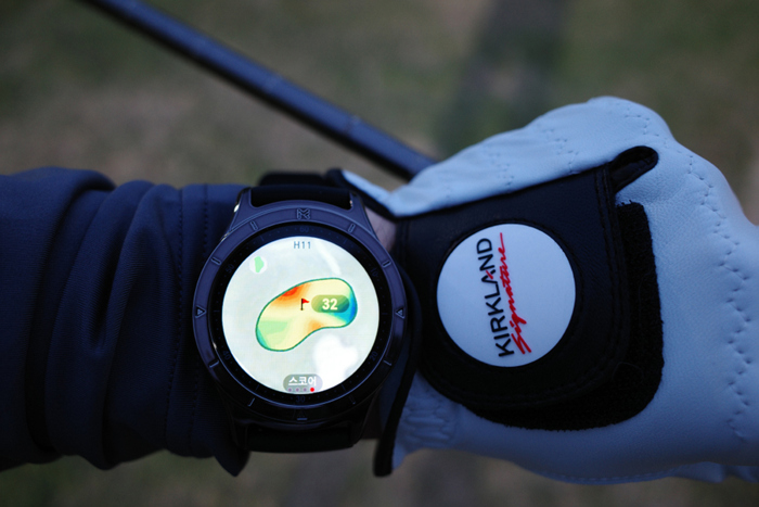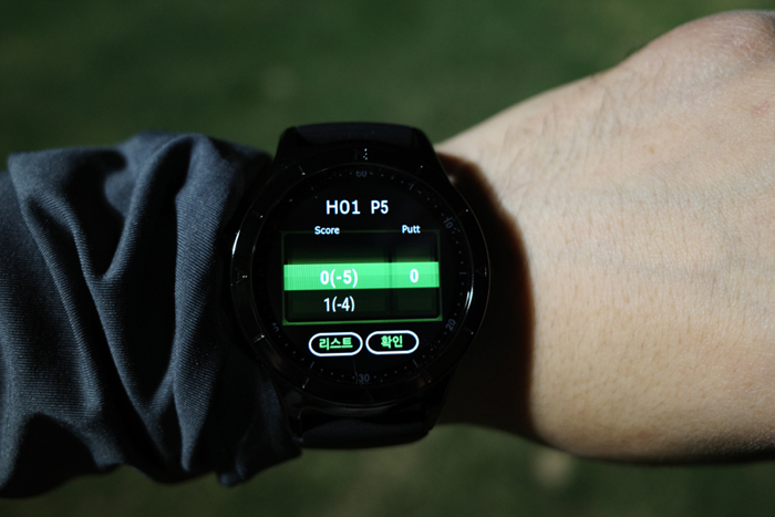 스코어 기록 기능을 이용해 일파만파 등의 보정치가 없는 순수 스코어를 별도로 기재할 수 있다. 최대 밝기 화면 모드에서 18홀 전체 라운드를 완료하니 배터리 잔량이 약 10%로 한 라운드는 문제 없이 사용할 수 있다. 다른 36홀 이상 플레이가 가능한 제품에 비해 배터리 효율은 다소 아쉬운 부분.