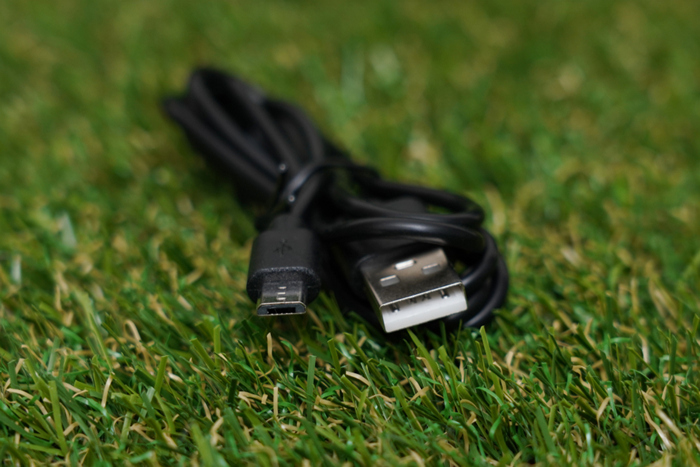 전체 구성품의 모습. 본체와 사용 설명서, 충전용 마이크로 USB 5핀 케이블로 구성되어있다.