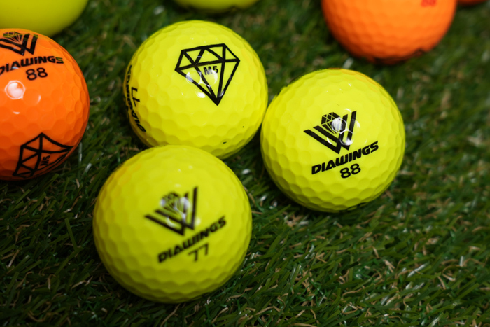 다이아윙스 M5 제품은 딤플 332개, 2피스, 듀폰 썰린 커버 구성을 가지고 있다. 화이트, 옐로우, 오렌지 세 가지 색깔이며, 스크린에 비치되어있는 공과 구분이 쉽도록 옐로우나 오렌지 제품이 많이 사용된다.