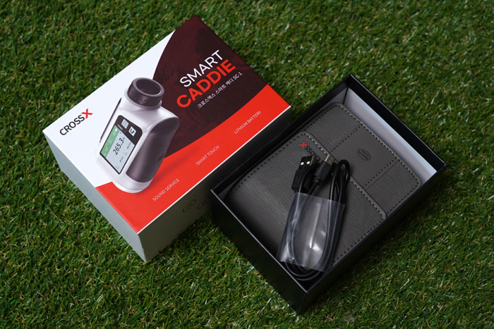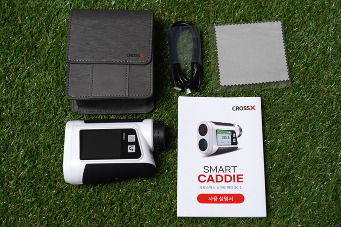 크로스엑스 스마트캐디 SC-1 모델은 최소 5m부터 최대 600m 측정이 가능하며, 6배율 렌즈가 탑재되어있다. 리튬 이온 방식의 충전 배터리, 고저차 보정 기능인 슬로프, IP54 등급의 방진/방수를 지원한다.