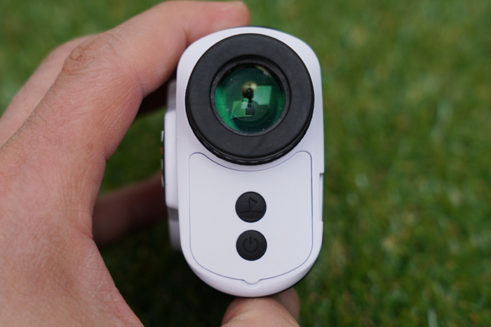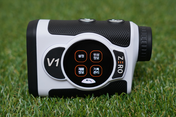 일반적인 레이저 거리 측정기의 외형을 가지고 있지만 왼쪽에는 마치 시계형 GPS 거리 측정기를 이식한듯한 동그란 디스플레이가 탑재되어 있으며, 흰색 바디에 위/아래 고무 그립이 더해져 안정적인 그립감을 보여준다. 후면에는 GPS 파트에서 사용되는 전원과 그린뷰 전환 버튼이 구성되어 있으며, 각각의 ON/OFF가 별도로 가능하다.