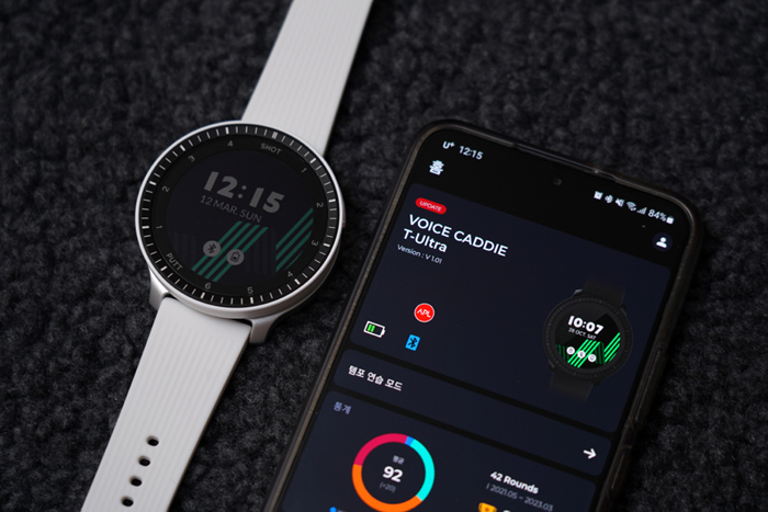 스마트폰의 보이스캐디 어플과 연동하면 워치페이스를 비롯해 펌웨어 업그레이드와 다양한 설정이 가능하다.