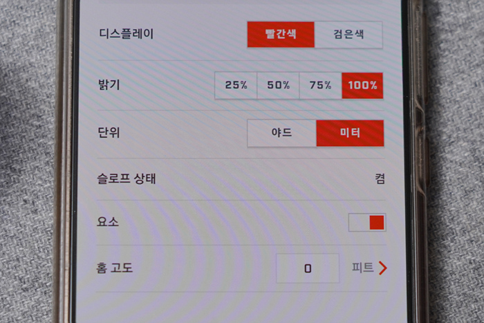 스마트폰과 블루투스로 연결하면 어플을 통해 디스플레이 색상과 밝기 슬로프 기능 사용 여부 등 다양한 설정을 어플을 통해 진행할 수 있어 편리하다.