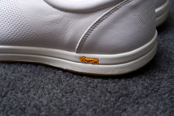 등산화쪽에서 좋은 평가를 받고 있는 비브람 아웃솔이 적용되어있으며, 로고가 포인트로 새겨져있다.