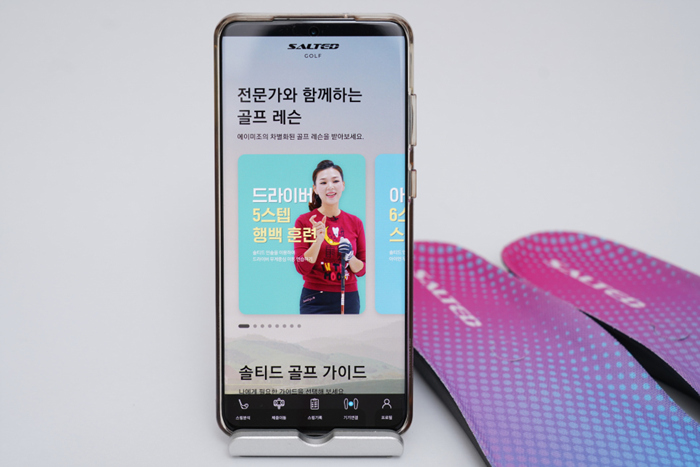 오늘 살펴볼 솔티드 스마트 인솔은 스마트 IoT 기술이 접목된 신발 깔창으로, 압력을 감지하고 스마트폰과 연동하여 시각적으로 표현함으로써 스윙을 분석하고 개선하는데 도움을 준다.