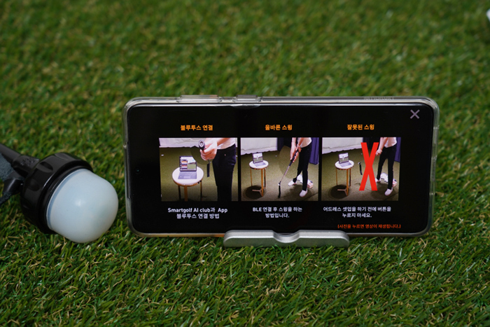 스마트폰과 연동된 상태에서 스윙을 진행하면 궤도, 클립 스피드와 볼 스피드, 페이스 앵글 등 다양한 항목이 어플에서 구현되며 화면을 전환해 다양한 각도에서 확인할 수 있다.