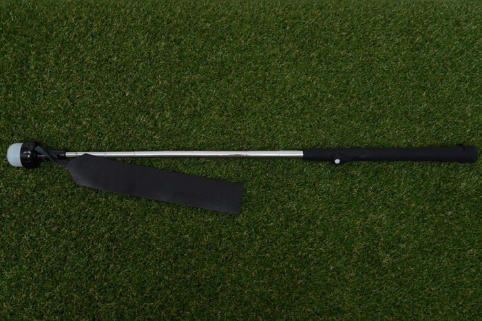 리더스트랩을 장착한 본체의 모습. 일반 클럽보다 짧은 길이로 구성되어 있으며, 스틸샤프트와 고무 그립이 적용되어있다.