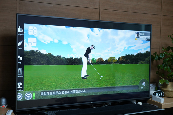 온라인 플레이 ㅇ니터페이스의 모습. 재미있는 그래픽을 통해 마치 스크린골프를 플레이하듯 구현해주지만 클럽간의 특성을 모두 반영한 리얼리티적 측면에서는 다소 부족한 느낌이 아쉽다. 실내에서 스윙 연습에 활용하고 가족과 함께 재미있게 게임을 즐기는 정도의 용도라면 좋은 제품이라 판단된다.