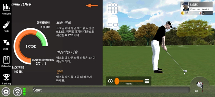 스마트폰의 어플을 설치해 다양한 스윙 데이터를 직관적으로 확인하고 연습과 게임 플레이가 가능하다.