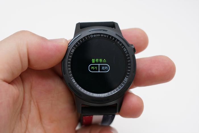 골프버디 aim W10을 착용하고 필드 라운드를 진행해보았다. 클럽하우스에 도착해 전원을 켜고 플레이골프를 선택하면 GPS 위치를 통해 골프장이 자동 선택되고 티오프 상태로 전환된다.