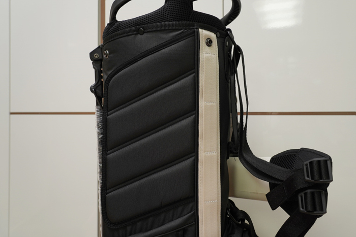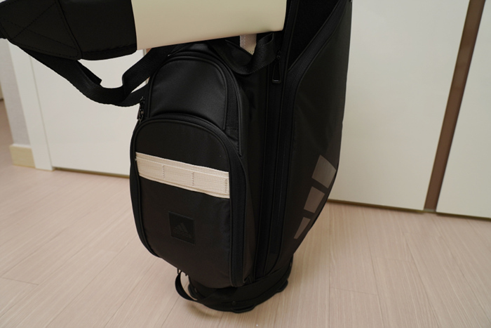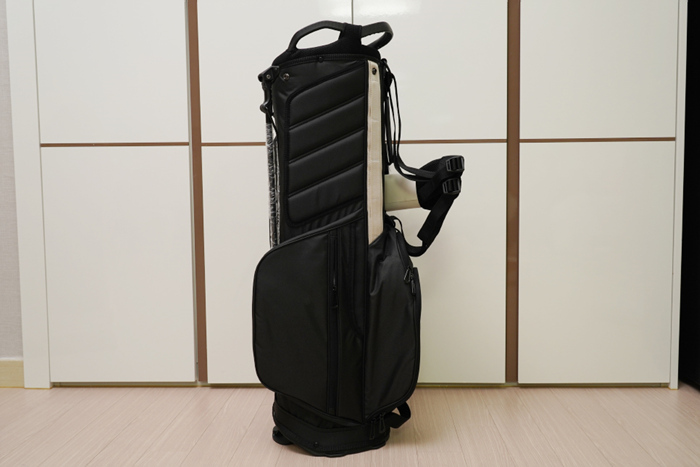 다양한 포켓이 곳곳에 구성되어있으며, 골프화도 수납이 가능해보인다. 대부분의 스탠드백이 그렇지만 양쪽 어깨에 걸치는 X자 형태의 숄더 스트랩으로 구성되어 다시 불편함이 있다.