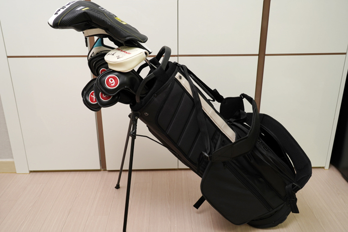 슬림한 스타일이다보니 4분할로 분할 갯수는 적으며, 입구는 9인치, 무게는 2.8Kg이다. 드라이버부터 퍼터까지 14개의 클럽을 모두 수납하는데에는 문제가 없다.