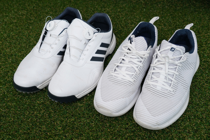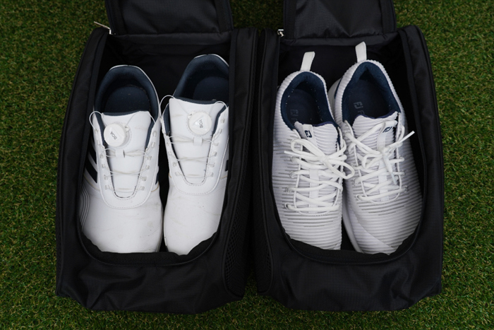 사용하고 있는 두 가지의 골프화를 수납해본 모습. 스파이크리스와 스파이크로 각각 실/내외 및 날씨 등에 따라 맞춰 사용하고 있는데, 이렇게 수납해놓으니 깔끔한 보관은 물론 편리한 휴대성이 더해져 매우 만족스럽다. 리뷰를 마친다.