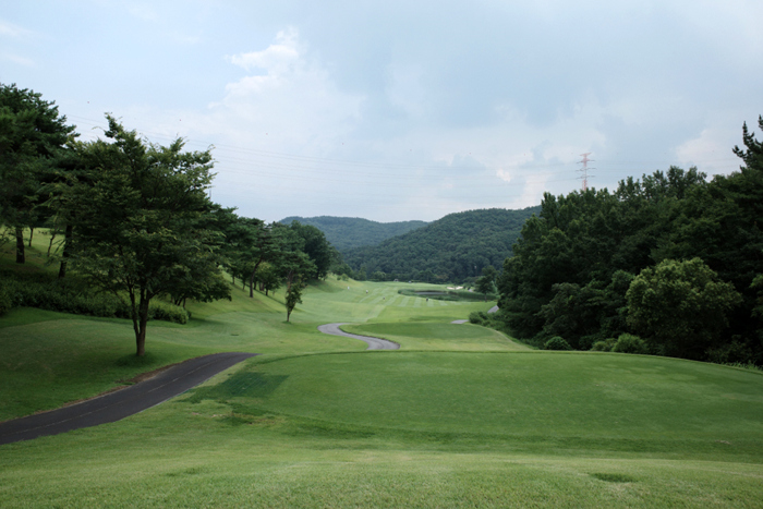 힐코스 9번홀은 323m 파4. 중간에 카트도로로 끊어지는 페어웨이 거리를 감안하고 공략하는 것이 좋다.