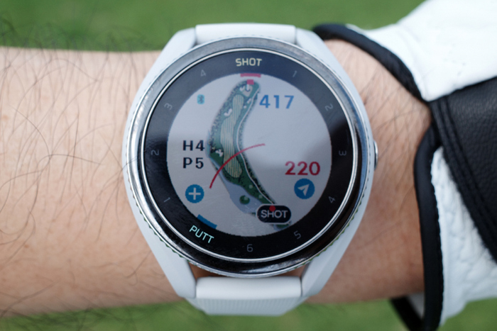 3번홀은 133m 파3. 그린 주변의 벙커가 상당히 위협적이다. 보이스캐디 T9 시계형 거리 측정기와 레이저 측정기를 함께 사용하고 있는데 맵은 지원되지만 실시간 핀 위치 기능인 APL은 지원되지 않아 아쉬움이 남는다.