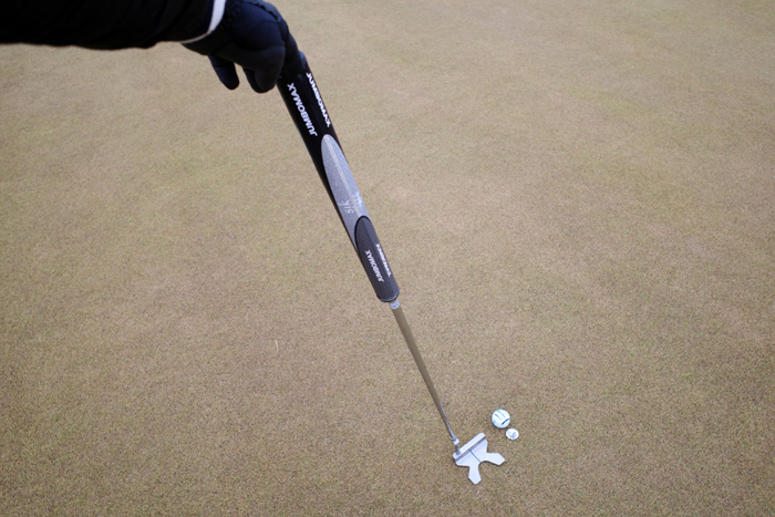 반달 모양의 넓직한 점보맥스 그립이 장착되어있다. 기존에 사용해본 오디세이 투볼텐 암락퍼터의 얇은 그립에 비해 팔 안쪽에 고정되는 느낌이 훨씬 안정적이라 만족스러운 그립으로 이후 최근 다시 투볼텐 암락퍼터를 구매해 이 그립을 장착하기도 했다.