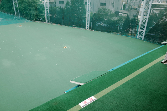 보통 인도어 연습장의 2층 이상에 구성되어있는 특성상 타석 전면은 절대 근접하지 않도록 주의해야할 필요가있다.