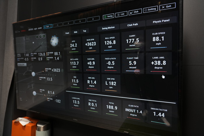 트랙맨을 통해 볼 수 있는 각종 샷 데이터. 입문 초보 골퍼는 물론 중/상급의 실력을 가진 플레이어도 분석과 레슨을 통해 실력을 향상시키기에 매우 좋은 환경을 갖추고 있다.