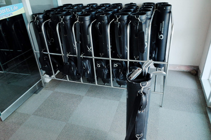 캐디백은 소지 자체가 불가능하고 피칭 웨지 이하의 웨지와 퍼터, 공만 챙겨서 이동하면 된다.
