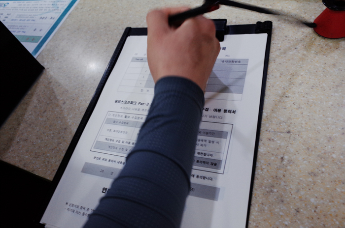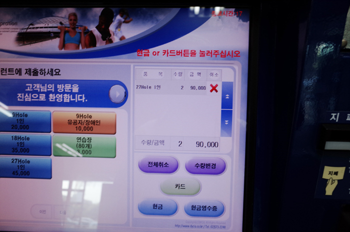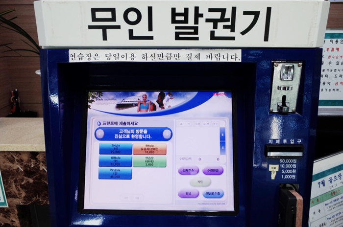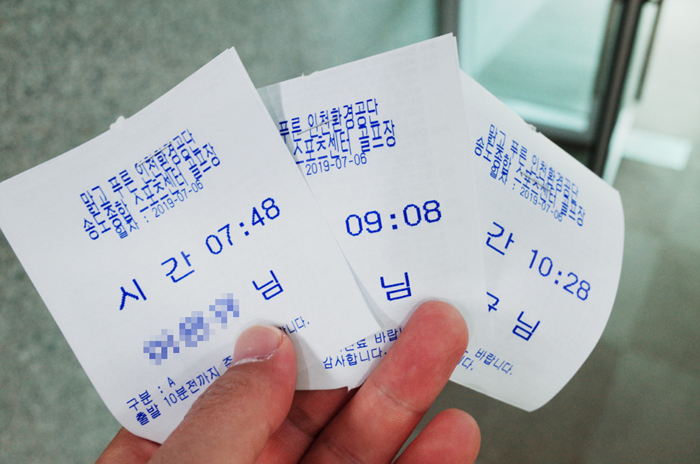 무인 발권기를 이용해 라운드 선택 후 결제하여 카운터에 제출하면 시간을 배정받게된다.