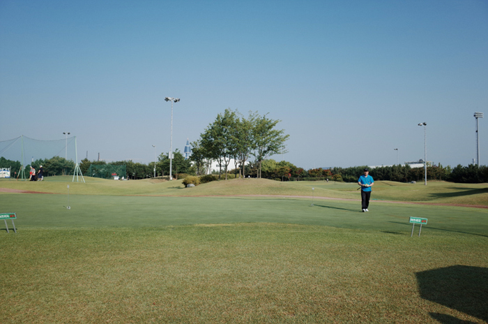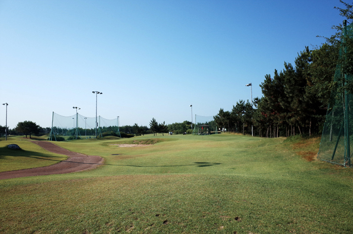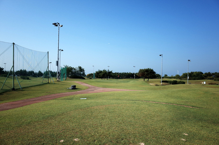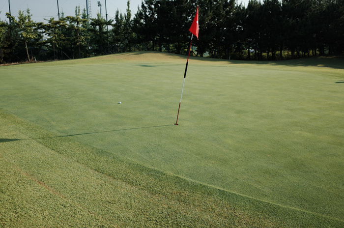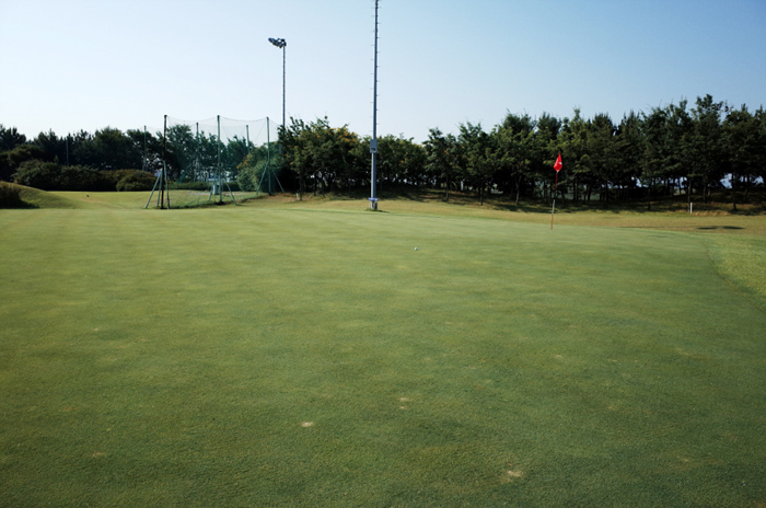 입구에 퍼팅 연습장이 위치하고 있으며, 전체적으로 넓은 평지에 구성되어있는 골프장의 모습도 확인할 수 있다.
