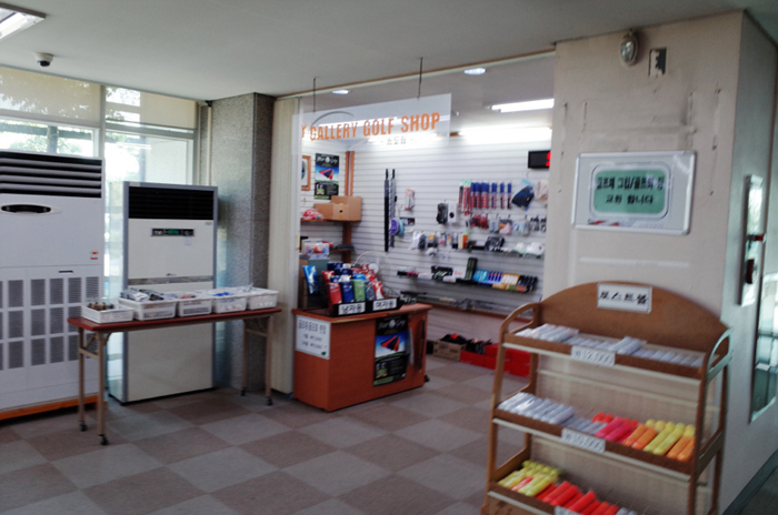 아담한 클럽 하우스 내부의 모습. 간단히 요기를 할 수 있는 매점과 골프채/골프화 렌탈도 이용할 수 있고 비용도 저렴하여 아직 장비를 마련하지 못한 아마추어 골퍼라도 문제 없이 이용할 수 있다.