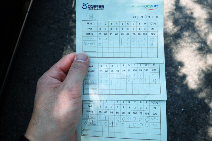 제대로된 숏 게임 연습을 위해 9홀 3바퀴인 27홀을 결제했으며, 카운터에 제출하여 시간을 배정받았다. 9홀당 1시간 20분의 시간이 주어지며 무난한 속도로 진행했을때 1시간 정도 소요되어 잠시 쉬고 다음 라운드를 할 수 있었다.