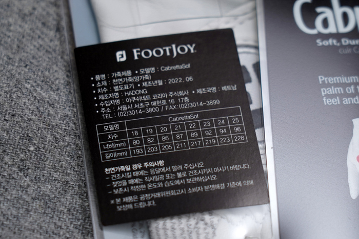 풋조이 카브레타 소프는 풋조이의 천연 양피 제품들 중 가장 저렴한편으로 개당 1만원 초중반대에 구매할 수 있어 필드 라운드에서 자주 활용하고 있다.