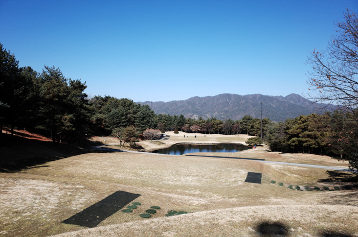 세컨샷 지점에서 티박스를 바라본 모습. 청계산으로 둘러싸여 멋진 풍경을 볼 수 있다.