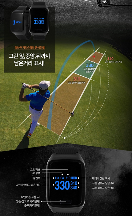 골프장에서 남은 거리를 확인할 수 있는 골프 거리 측정기는 GPS 위성 신호를 기반으로한 시계형 제품이 레이저 제품에 비해 편리하다.