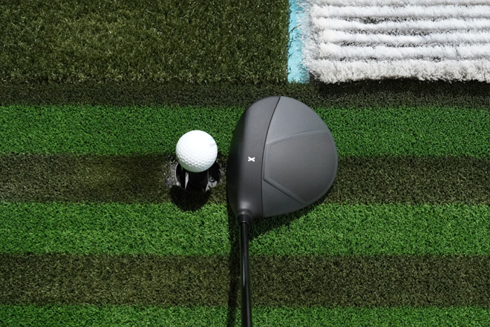 헤드를 편안하게 내려 놓으면 약간 오픈되어있는 느낌의 어드레스가 나온다. 중앙 부분에 X자 표기가 되어있어 어드레스에 도움을 준다.