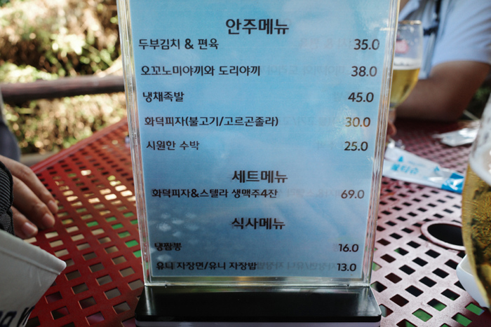 야외에 구성되어있는 그늘집. 시설은 낙후되었지만 말 그대로 나무 그늘에 잘 가려져있는 테이블에서 시원한 생맥주 한잔은 매우 좋았다. 전반 스코어가 2오버로 꽤 좋아 후반도 기대가 되는 상황.