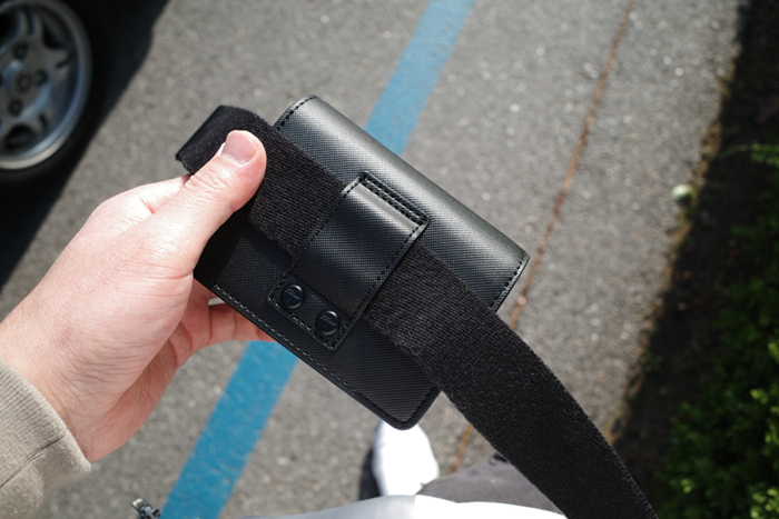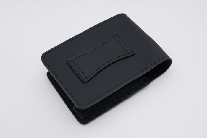 벨트에 착용하는 형태의 제품으로 뒷면에는 벨트를 통과할 수 있는 홀이 구성되어있다.