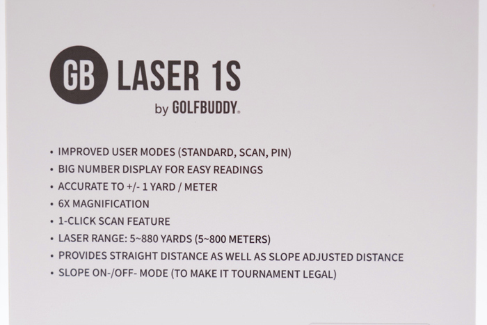 골프버디 LASER 1S 모델은 레이저 타입으로 6배율의 렌즈가 부착되어있으며, 스펙상 5~800미터의 거리 측정이 가능하다. 광학 손떨림 방지 기능은 제공되지 않는 보급형 제품이다보니 실제는 200미터 내외의 타겟까지 정확하게 측정할 수 있다고 보면 된다.