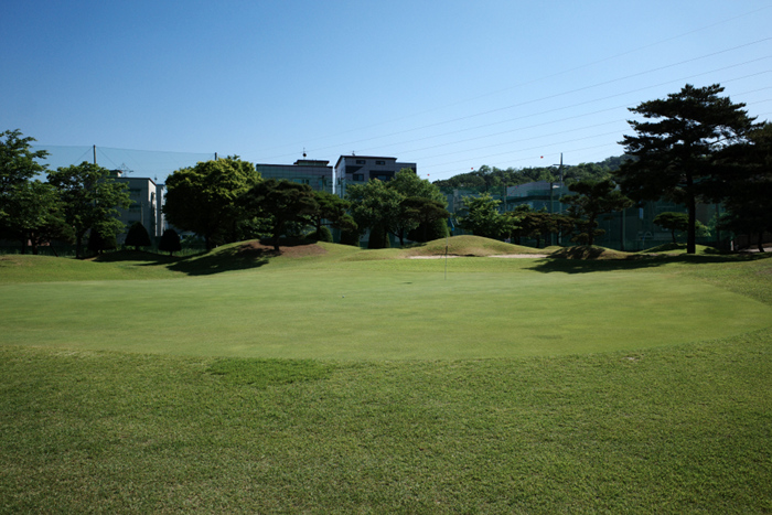 페어웨이가 넓어 티샷에 미스가 있더라도 짧은 어프로치 연습을 하기 좋다.