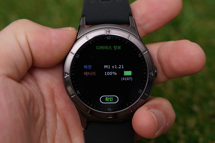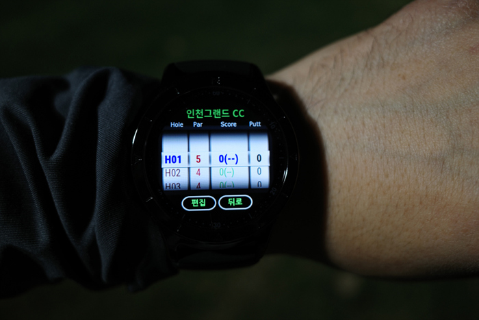 스코어 기록 기능을 이용해 일파만파 등의 보정치가 없는 순수 스코어를 별도로 기재할 수 있다. 최대 밝기 화면 모드에서 18홀 전체 라운드를 완료하니 배터리 잔량이 약 10%로 한 라운드는 문제 없이 사용할 수 있다. 다른 36홀 이상 플레이가 가능한 제품에 비해 배터리 효율은 다소 아쉬운 부분.