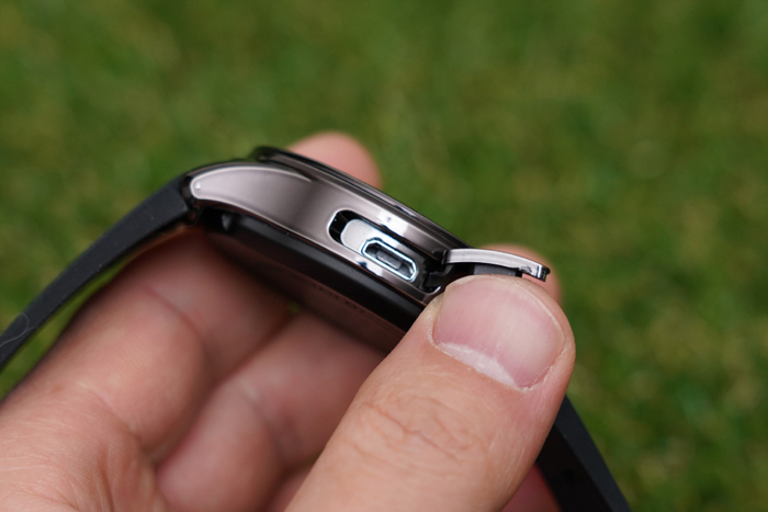 왼쪽에는 충전을 위한 포트가 커버로 덮혀있으며, 오른쪽의 버튼을 이용해 각종 기능을 실행할 수 있다. 화면은 풀터치를 지원하며, 생활 방수 기능으로 악천후에서도 문제 없이 사용할 수 있다.