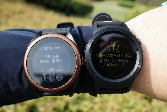 실전 필드 라운드를 진행하며 두 모델을 비교해보았다. 골프장에서 골프 모드를 실행하면 현재 GPS 위치를 기반으로 골프장의 종류와 홀 번호가 자동으로 인식된다. 이후 홀을 이동할때마다 자동으로 전환되어 별도로 홀을 설정할 필요 없이 편리하게 이용할 수 있다.