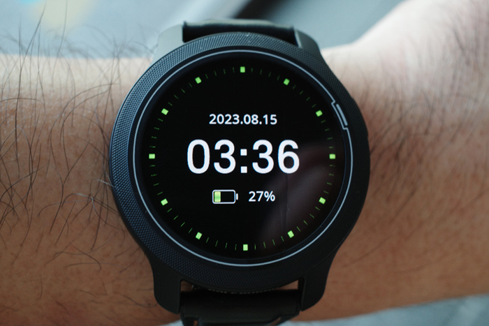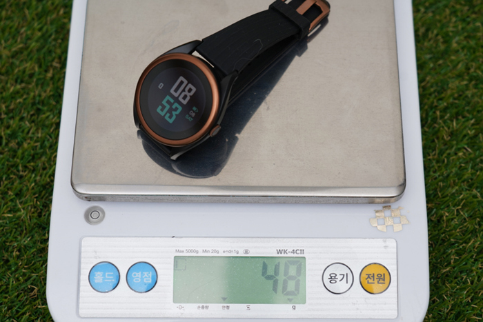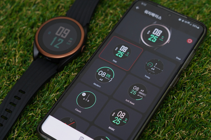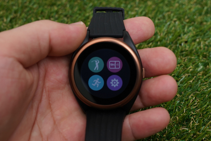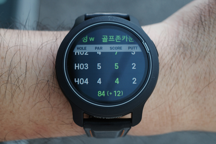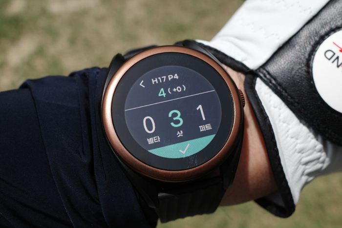 기본 워치 인터페이스의 모습. 크기가 다소 큼직하긴 하지만 골프 라운드가 아닌 평상시 시계로 활용할 수 있다.