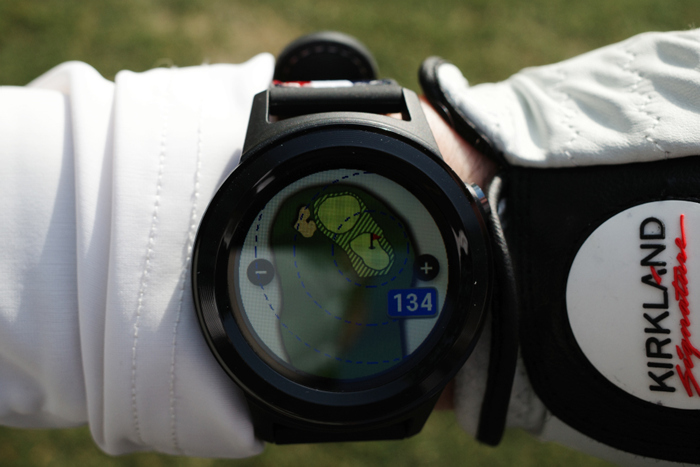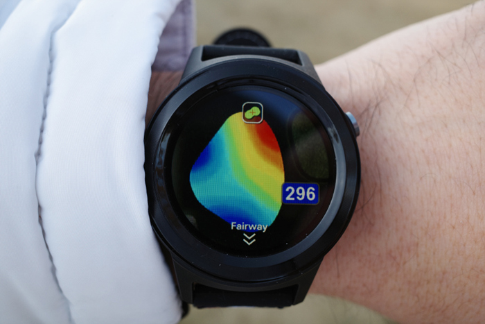 풀터치 컬러 디스플레이로 스마트워치를 사용하는 느낌으로 편리하다. 좌측으로 쓸면 코스 전체의 구성을 볼 수 있는 스마트홀 뷰 기능이 동작하며, 티박스로부터의 거리, 그린으로부터의 거리가 양쪽으로 표시되어 선호하는 거리를 남기는 클럽의 선택이 가능하다. 현재 위치를 기반으로 자동으로 확대되어 더욱 편리한 느낌을 받을 수 있다.