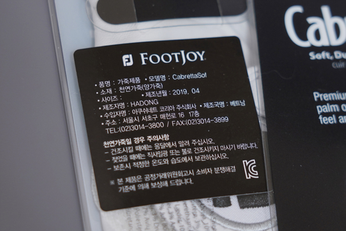 적당한 두께감에 천연 양피 장갑의 부드럽고 매력적인 착용감이 인상적이다. 기존에 필드 라운드에서 사용하던 골프 장갑은 풋조이 카브레타소프 모델로, 가격은 훨씬 저렴하지만 거의 차이가 없는 밀착감을 보여준다.